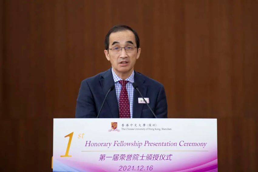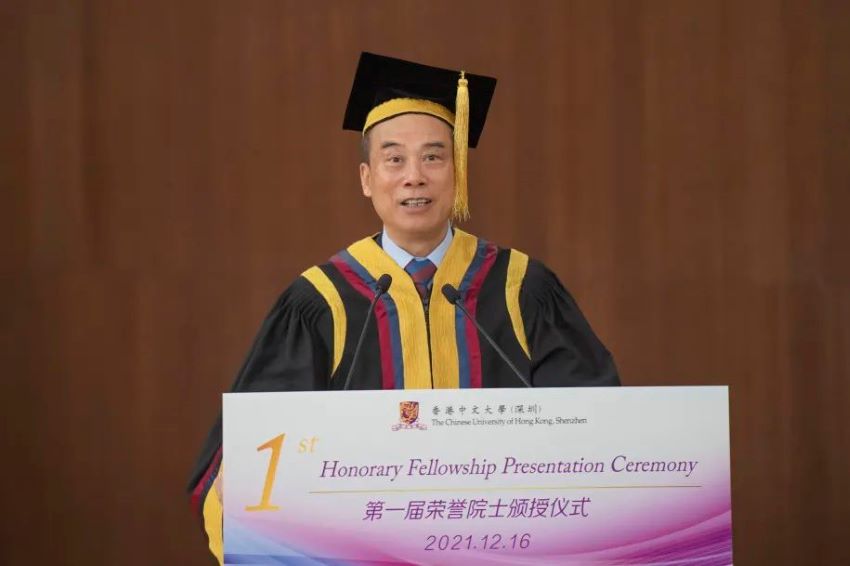 12月16日上午,香港中文大学(深圳)向四位杰出人士颁授荣誉院士衔,以表彰他们在专业领域的卓越成就和对大学及社会的重要贡献。香港中文大学(深圳)第一届荣誉院士衔分别授予:正中集团总裁、科兴制药董事长邓学勤先生、香港中文大学原校长刘遵义教授、鸿荣源集团董事长赖海民先生以及前岁宝集团董事局主席杨祥波先生。