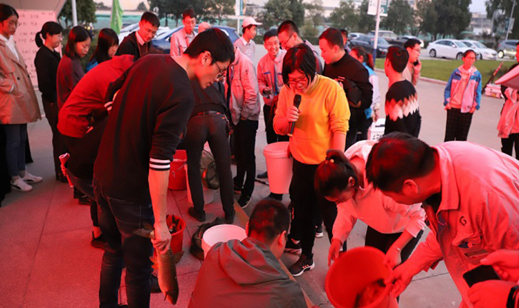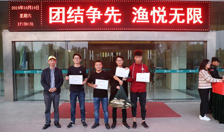比赛开始前,科泽新材助理总经理谢鑫为活动致辞,谢总表示:今天活动的主题是“团结争先、渔悦无限”,我们不仅在工作上要团结争先,我们在活动中也要各展绝技,努力争胜,希望大家玩得尽兴,赛出风采。随后,参赛的40位选手一路小跑,奔赴自己钟意的位置。待各位选手准备就绪后,谢总宣布比赛正式开始,裁判挥动甩杆信号旗,40位选手一起甩杆,场面颇为壮观。比赛刚开始1分42秒,一条鱼就破水而出,选手黄加中喜提高效奖。经过2个小时平静而又激烈的角逐,愉悦奖、质量奖、产量奖分别被黄加中、王浩和杨正栋摘得,团结奖由郑海同、黄加中、朱建波和葛飞响组成的第七组获得。颁奖以后,是热闹的分鱼环节,收获的喜悦洋溢在每个人的脸上。