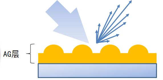 1 AG防眩光:通过在载体表面做表面处理(表面粗糙化)简称:漫反射原理