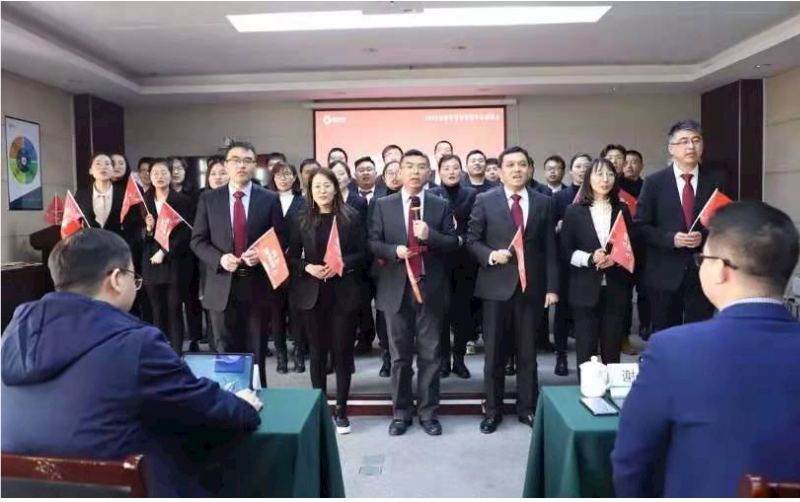颁发责任书和战旗现场战鼓擂动、旌旗猎猎,责任书和战旗的背后是沉甸甸的责任、承诺和担当,营销中心全体宣誓必定完成任务。刀锋淬烈火,利刃展锋芒。一声声口号铿锵有力,一句句誓词掷地有声,以气吞山河的决心与信念,喊出营销的风采,展示了凝心聚力和奋战到底的决心。