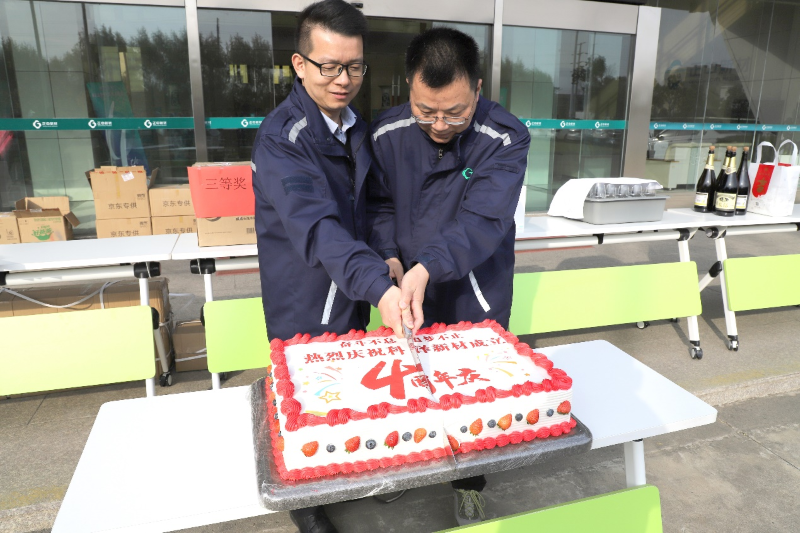 公司副总裁谢鑫、沭阳事业部副总经理刘勇共同切蛋糕