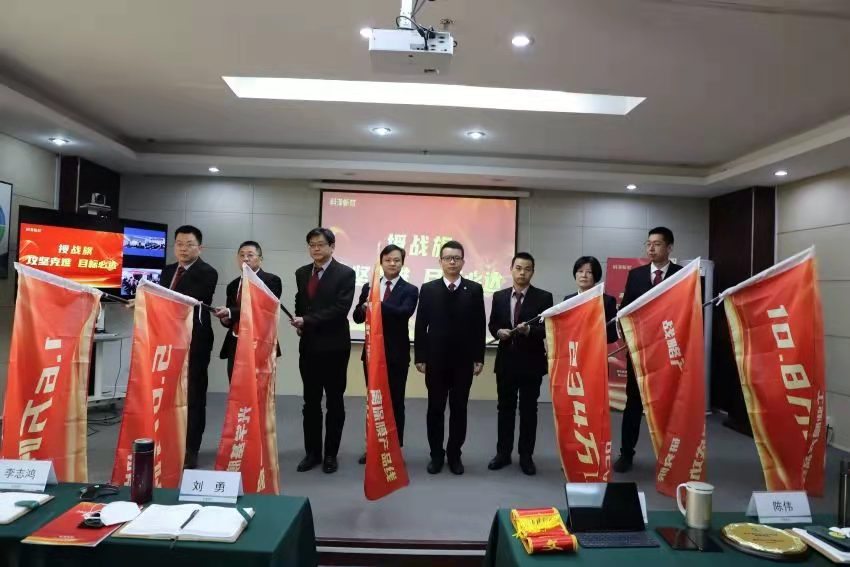 本次大会议程共由四部分组成,议程一是各产品线和业务职能工作汇报;议程二是荣誉激励表彰;议程三是经营目标责任书颁发及授战旗仪式;议程四是科泽新材副总裁谢鑫做总结发言。