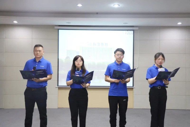 诗朗诵环节,来自公司不同部门、不同岗位、不同工龄的四名员工代表,声情并茂地朗诵了《产品主义宣言》。一张张图片再现了科泽四年多的奋斗历程,一句句台词承载着科泽人对产品主义核心价值观的认同、理解与行动。