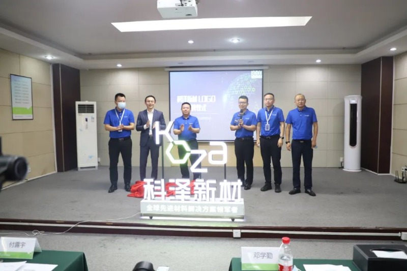 根元咨询CEO周文向大家讲解了科泽LOGO创意的思路及内涵。独具一格的设计,将图形美感与辨识度、行业属性与文化与品牌内核进行了完美结合,体现出科泽新材对解决方案、科技创新及绿色低碳发展的追求。随后,在全体参会人员的见证下,邓学勤、付露宇、谢鑫等共同为科泽新材LOGO 揭牌,开启科泽品牌形象新篇章。